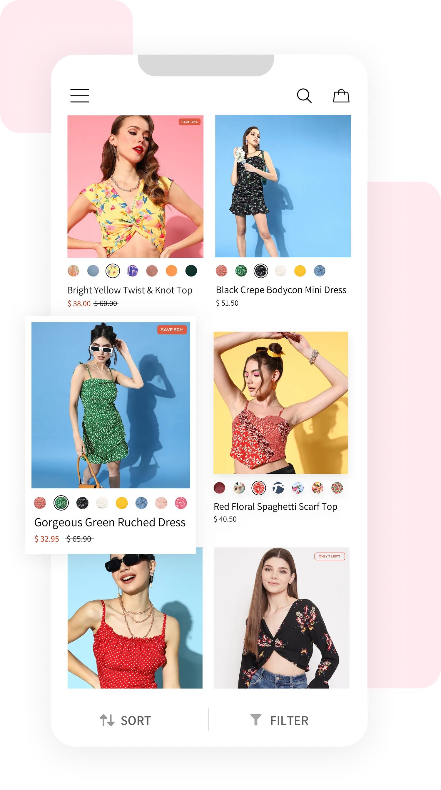 View ExampleRevamp your product showcase by adding eye-catching swatches featuring variant pricing, simplifying the shopping journey and conserving valuable time for your customers.